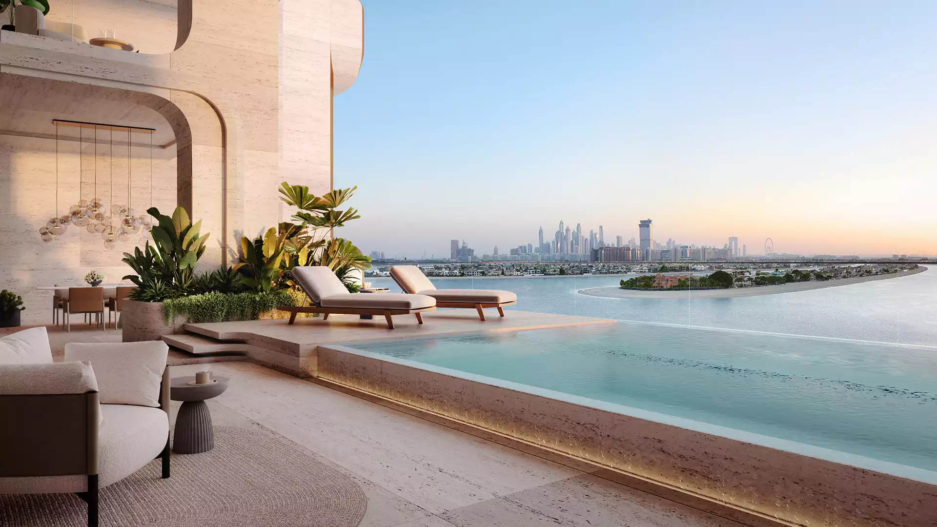 The newest gem of contemporary luxury at Palm Jumeirah is the Alba Residences Dorchester Collection, which was created by the well-known Omniyat and features penthouses, duplexes, and apartments with three or four bedrooms.