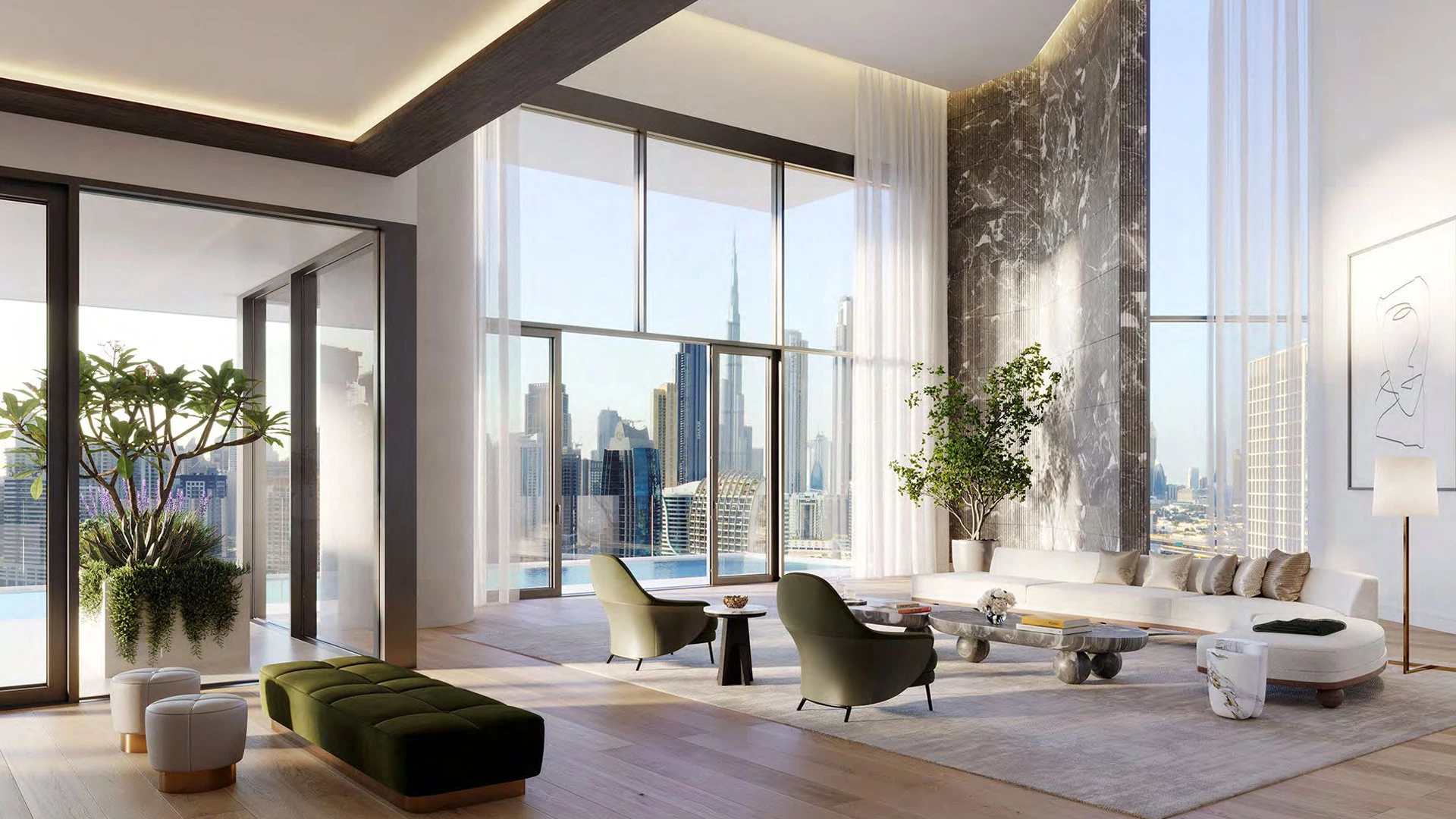 التصميم الراقي: يقود التصميم المعماري أسماء عالمية مرموقة مثل فوستر + بارتنرز، مع ديكورات داخلية من تصميم جيلز وبوسيي، وتخطيطات تضم نوافذ ممتدة من الأرض حتى السقف، وتشطيبات راقية، وأنظمة منزلية ذكية متطورة لراحة عصرية بلا عناء.
