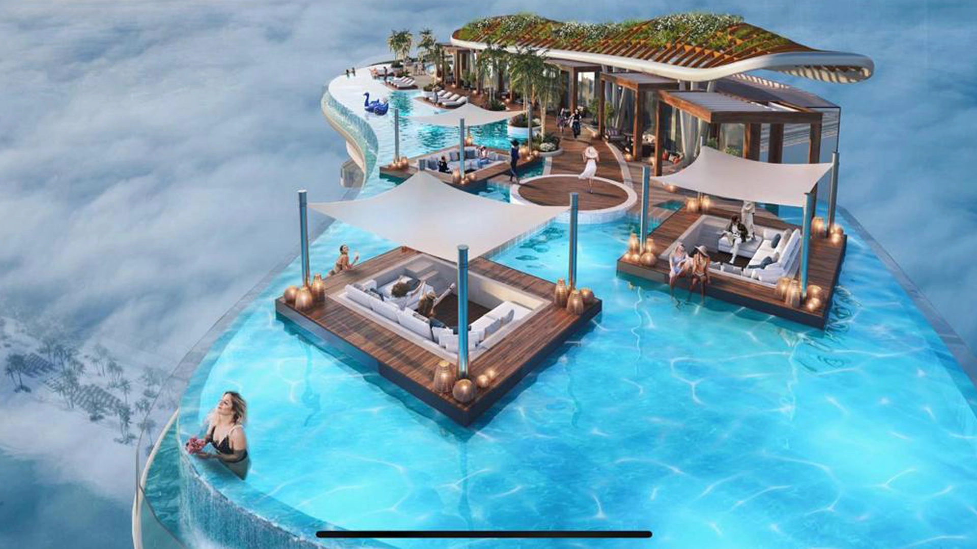 • حوض سباحة على حافة الشرفة بلا نهاية.