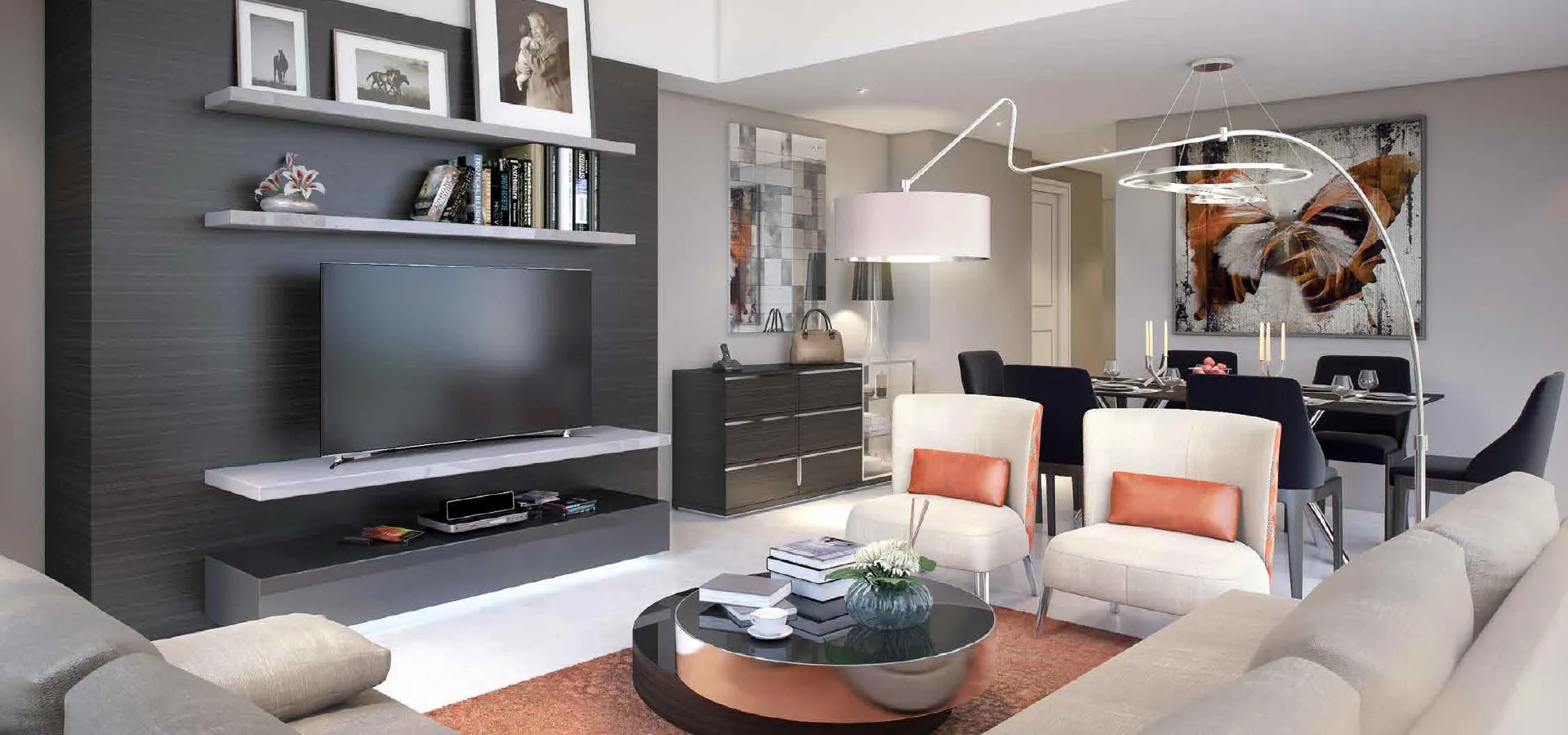 علاوة عن ذلك، توفر منطقة الخليج التجاري مفهوماً حضرياً للمعيشة مع مرافقها التجارية والسكنية والضيافة والترفيهية. استمتع بالمساحات الخضراء والمعالم المائية والبحيرات الرائعة والنوافير المتلألئة التي تغمر المنطقة، في أثناء ذلك يمكنك تجربة مراكز التسوق الشهيرة والنافورات الراقصة المجاورة لمنطقة البرج وشارعها الشهير. تم تصميم كل ركن من أركان منزلك لتحقيق ذروة الكمال وقمة الجمال، وكل رفاهية تأتي مع راحة قصوى. كما ستستمتع بإطلالات خلابة على الحي المحيط من كل شقة