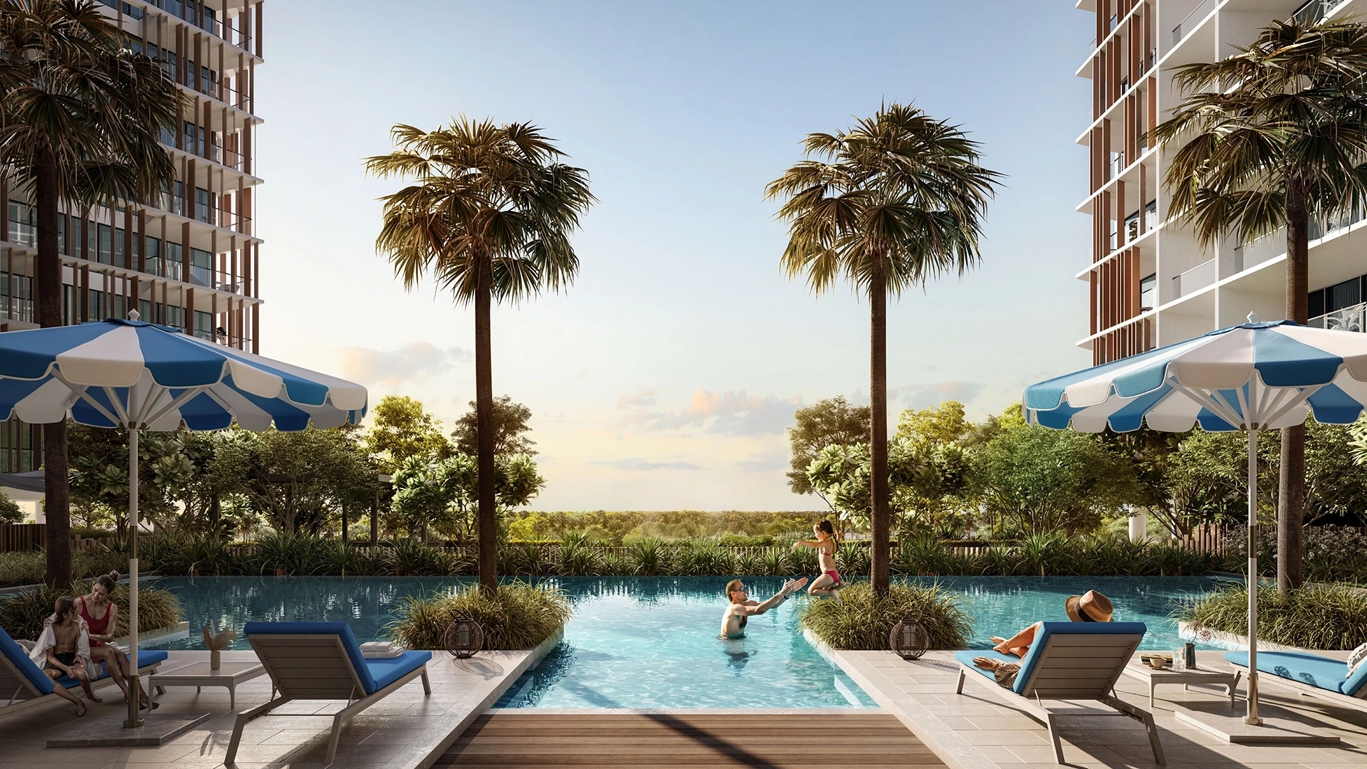 As its name suggests, Parkfive presents five distinctive residential towers by Deyaar Development in Dubai Production City, seamlessly integrated within expansive green landscapes. Ivy at Park five harmonizes peaceful natural settings with striking modern architecture