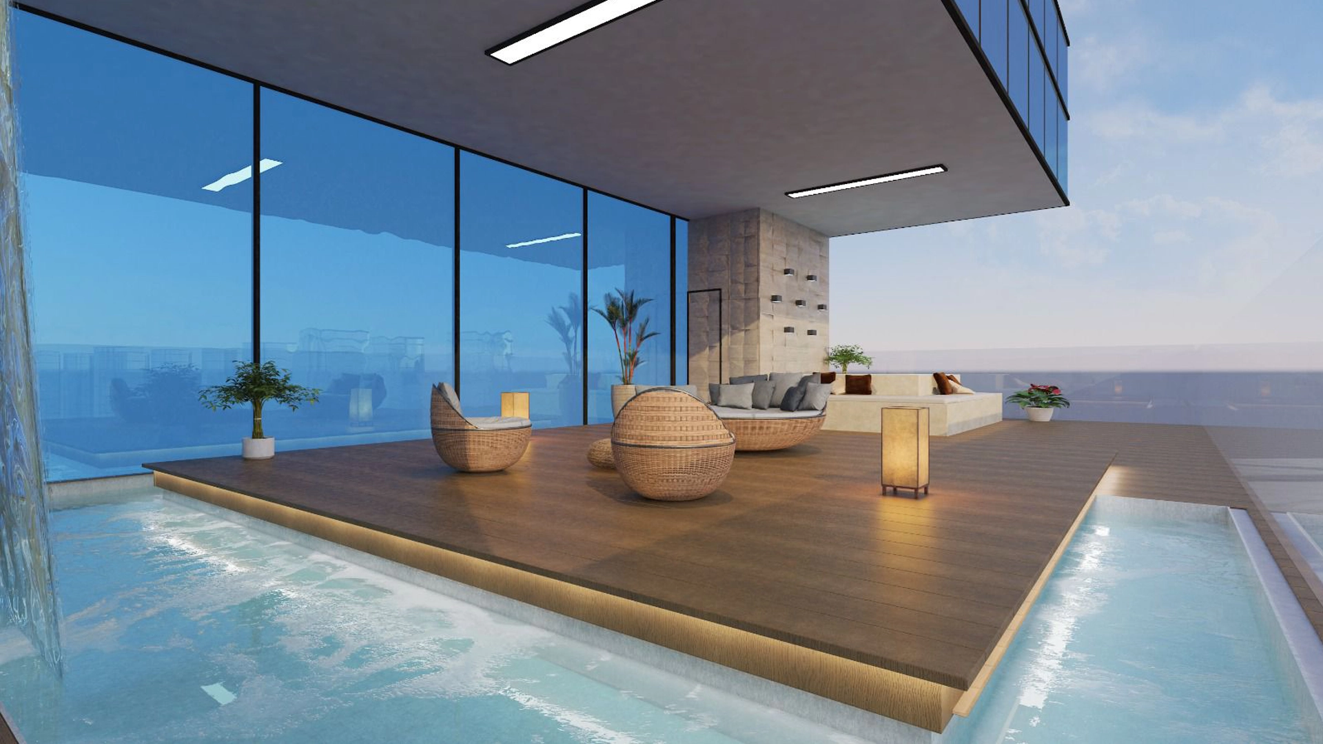 В каждом кластере расположено по три здания. В них находятся офисы, магазины, отели и апартаменты.